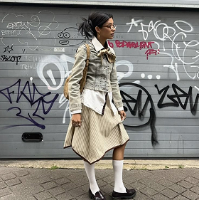 Create a look that mixes two contrasting aesthetics.